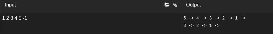 1 2 3 4 5 -1. these are the input I am giving.