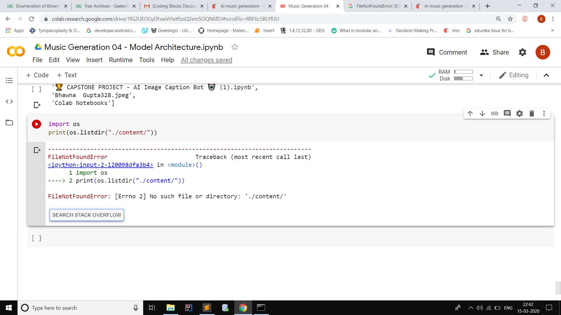 Restart the kernel, and remove the dot in starting. print(os.listdir("/content/"))