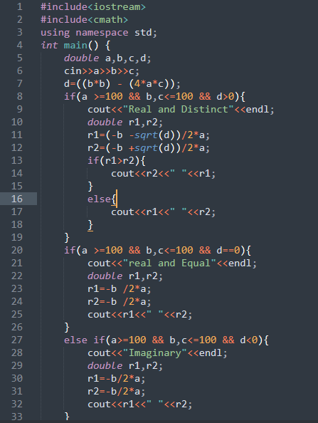 x2=((-b)-sqrt(b*b-4*a*c))/2*a;