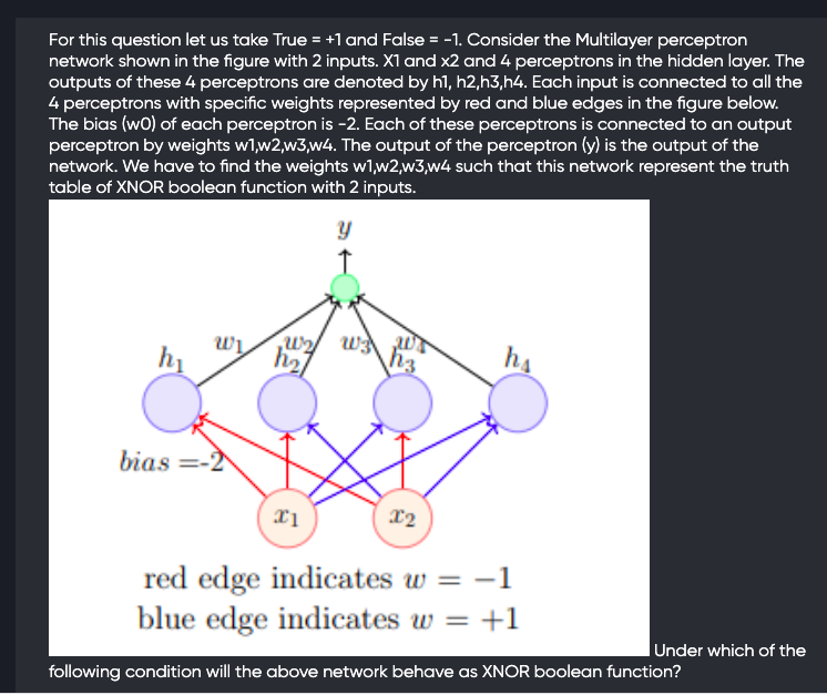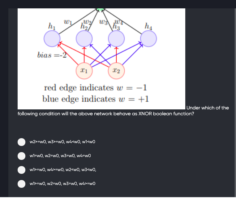 did get how to calculate w value on the basis of XNOR gate plz explain with the solution.