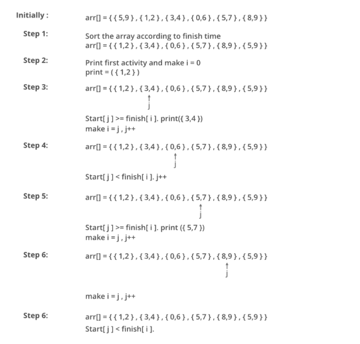 …….a) If the start time of this activity is greater than or equal to the finish time of the previously selected activity then select this activity and print it.