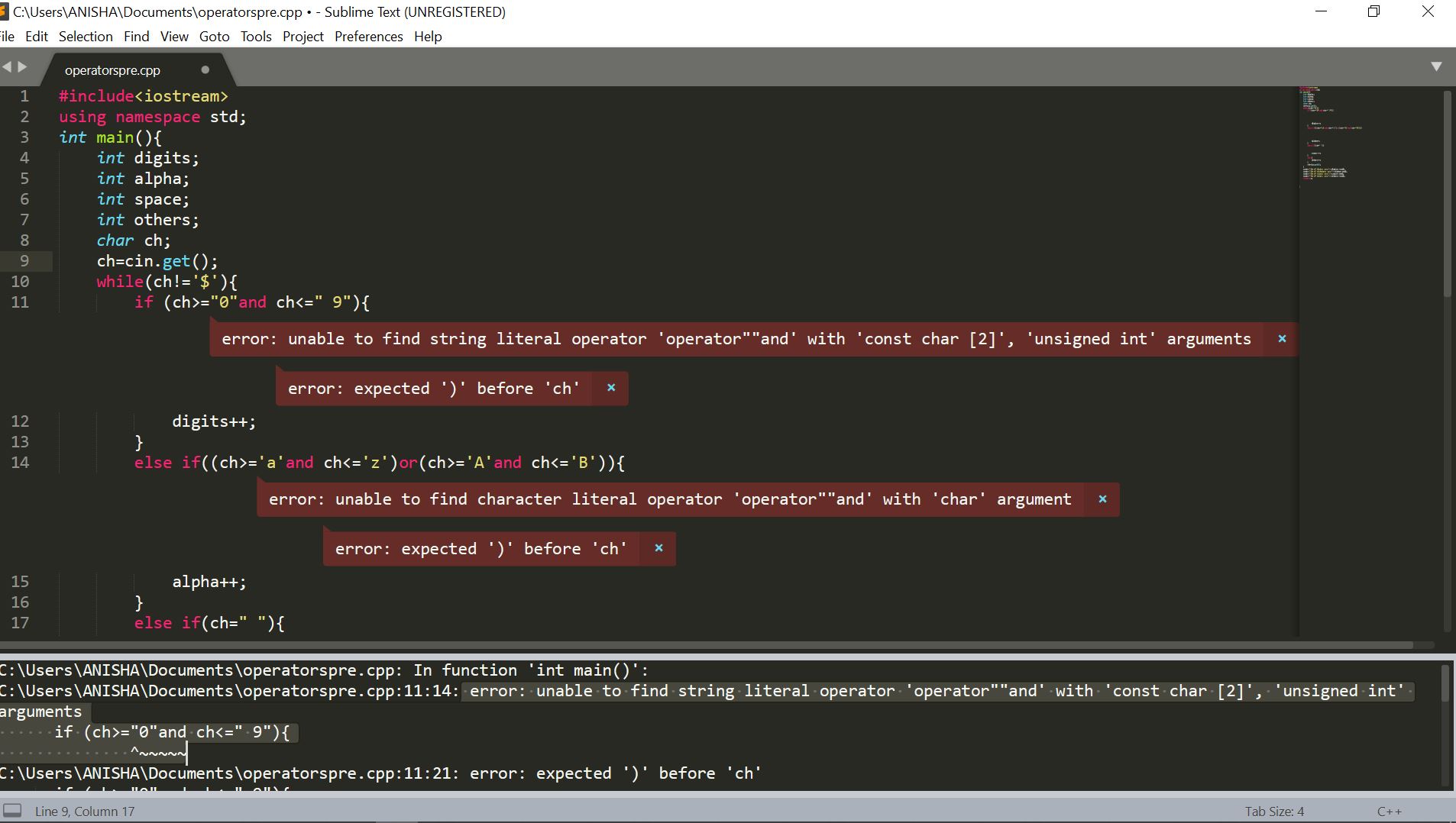 i m still not getting correct output its not showing count in others one while its showing the count in spaces and also please tell and is same as && then why there was error coming?