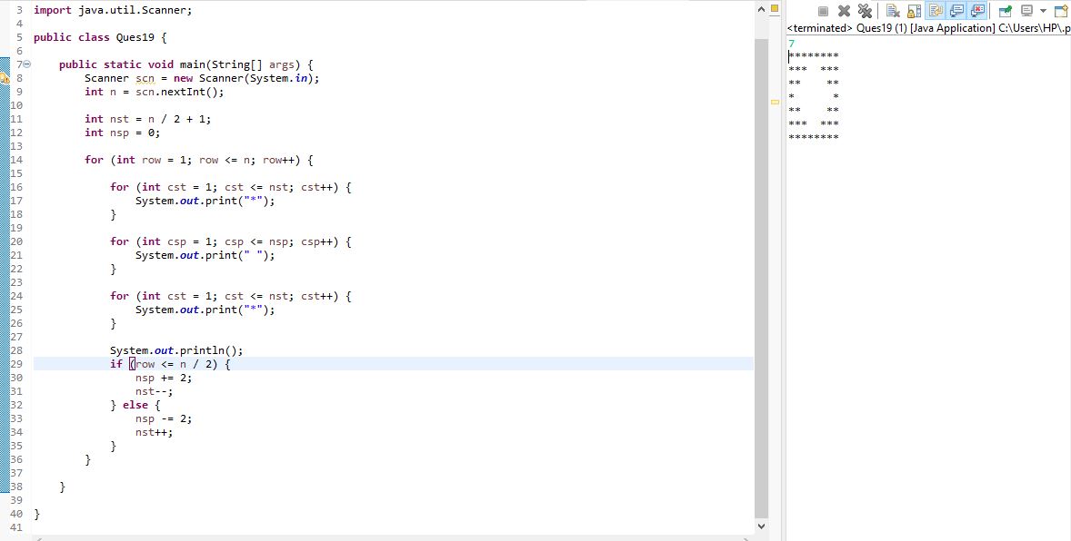 Not able to figure out the appropriate modification required to be made in my code to get that extra middle star in the top and bottom row eliminated.