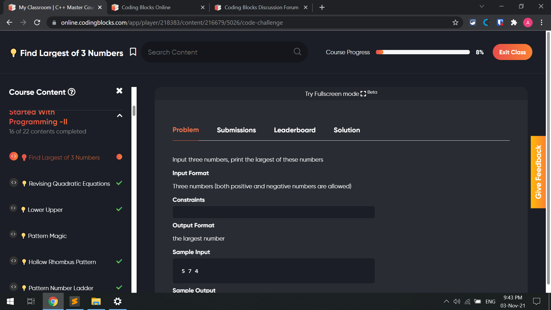 i have this issue with two assignments “Find Largest of 3 Numbers” & “Pattern Magic”