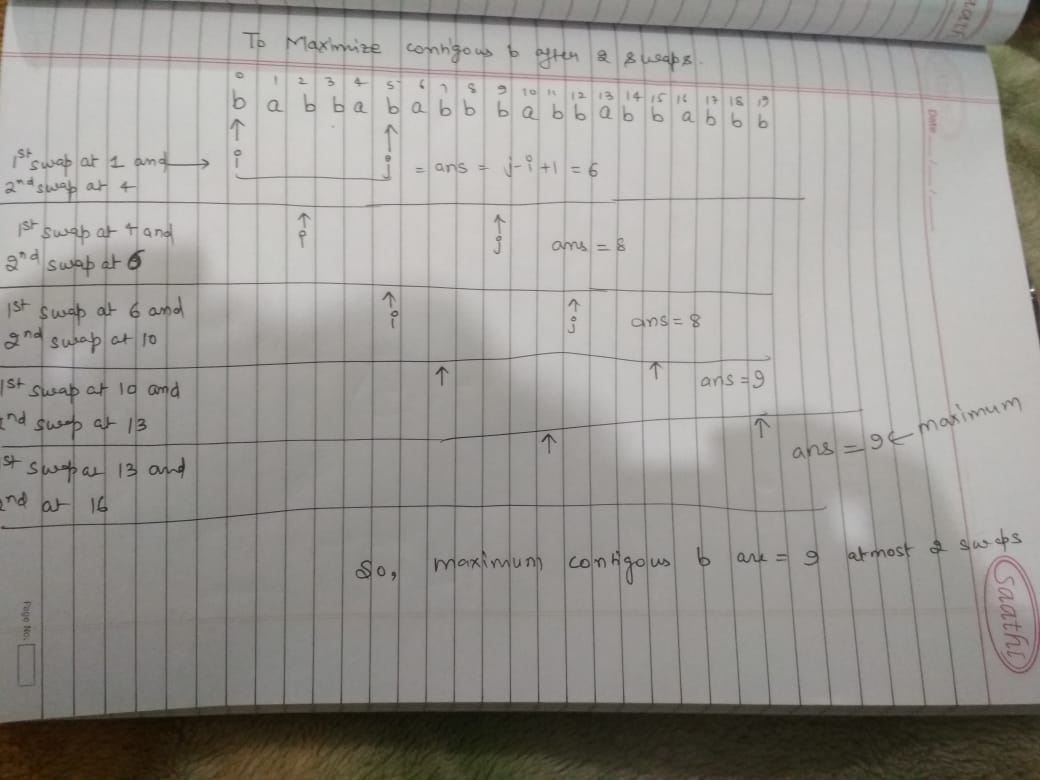case1 will be swapping at most 2 b’s and calculating max length so if u change the first 2 bs then the string will be aaaaaab