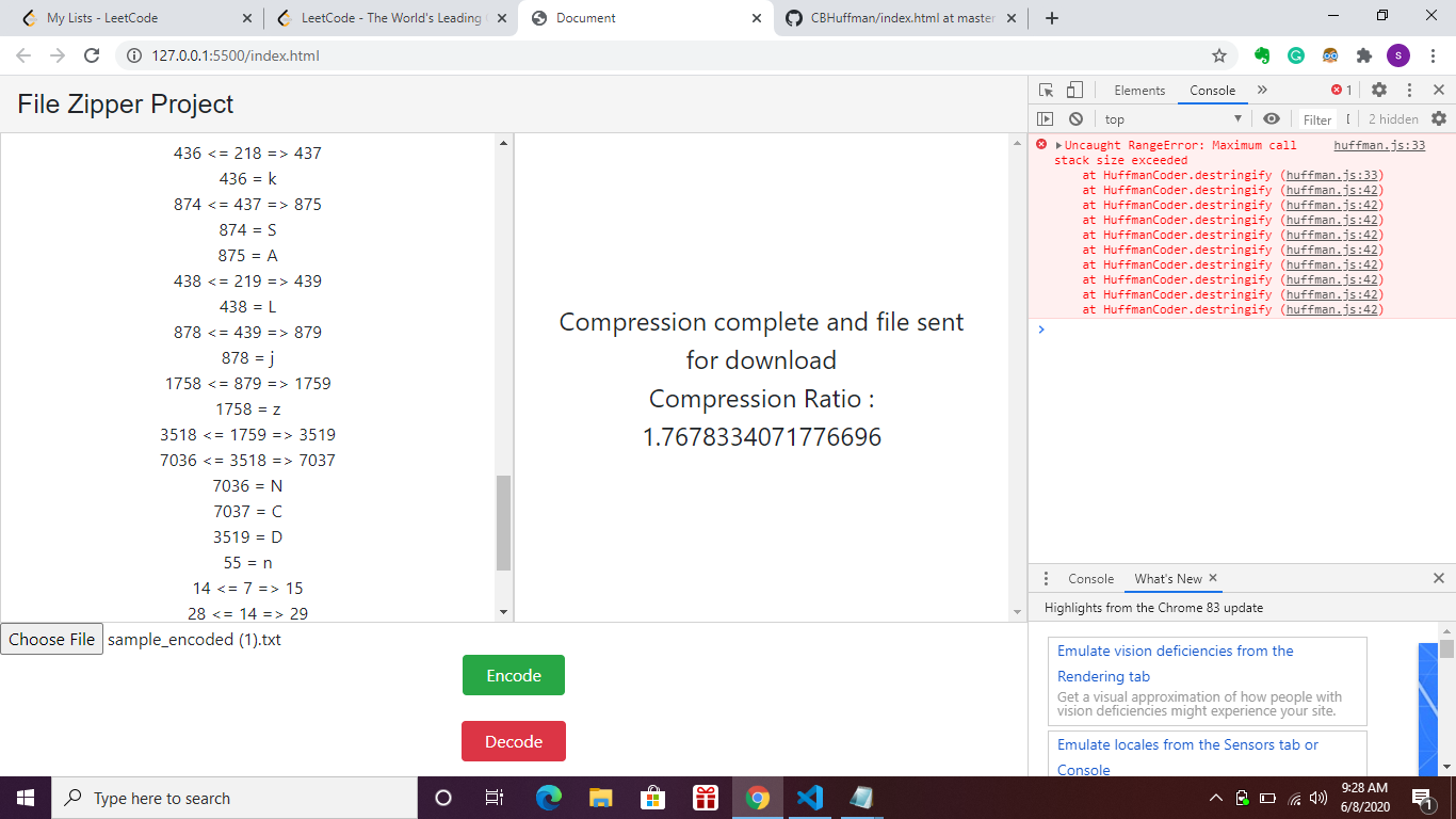 Sir i was coding the File Zipper Project using Huffman Encoder but I am getting the following error while decoding the encoded text file. Could you please solve my doubt? I used the same could that you used.