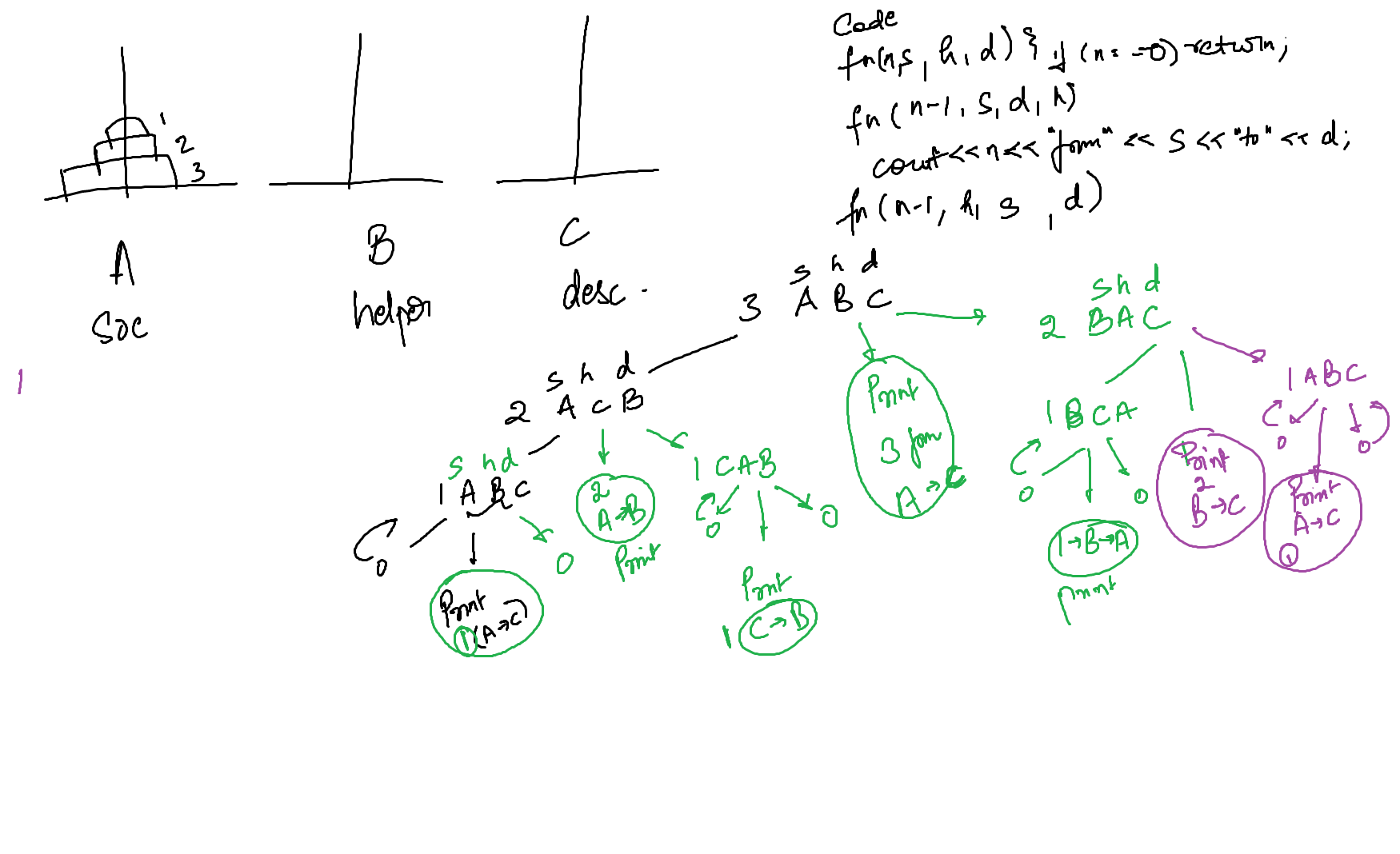 3. recursive call n-1 , h , s , d ,( read as