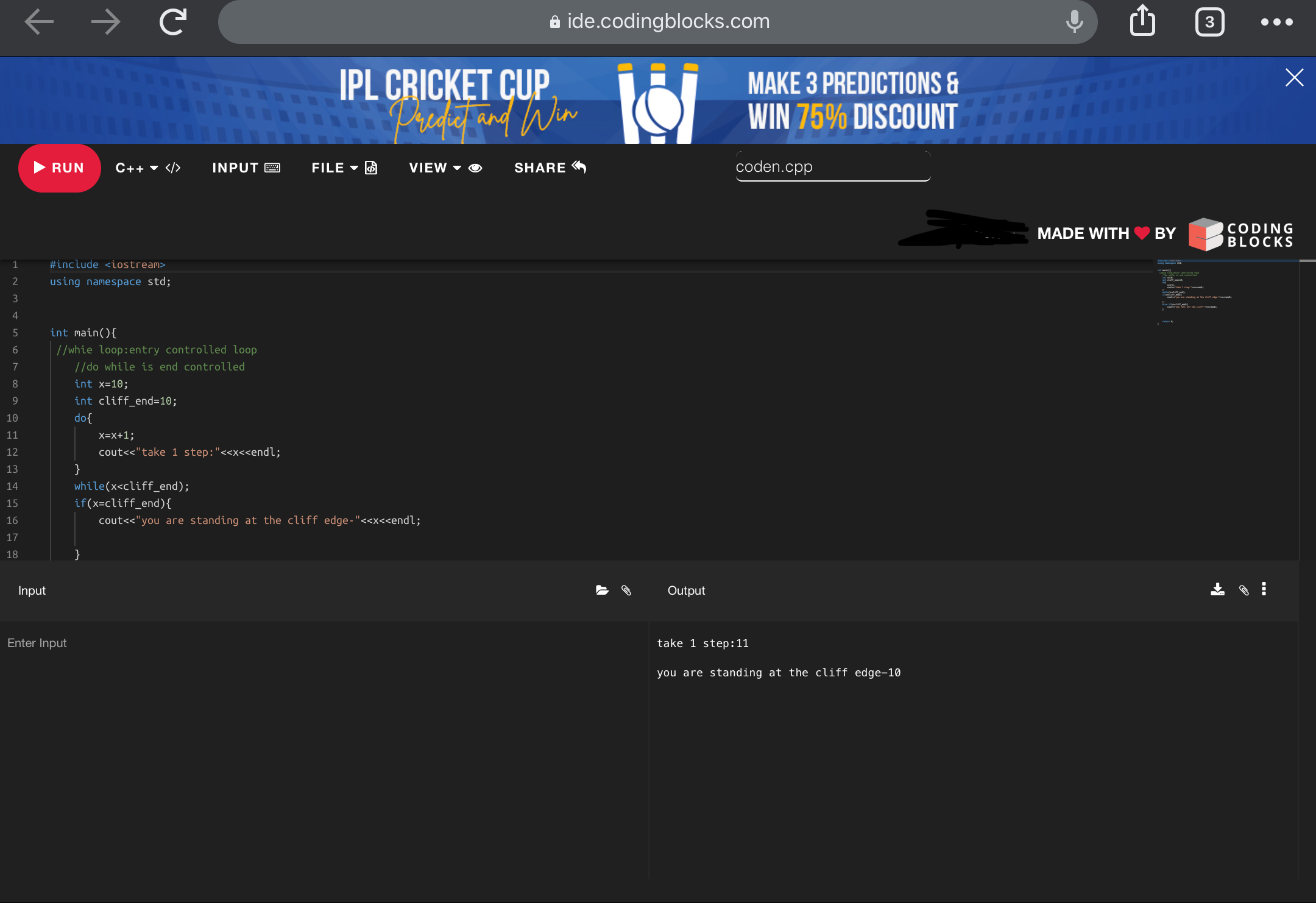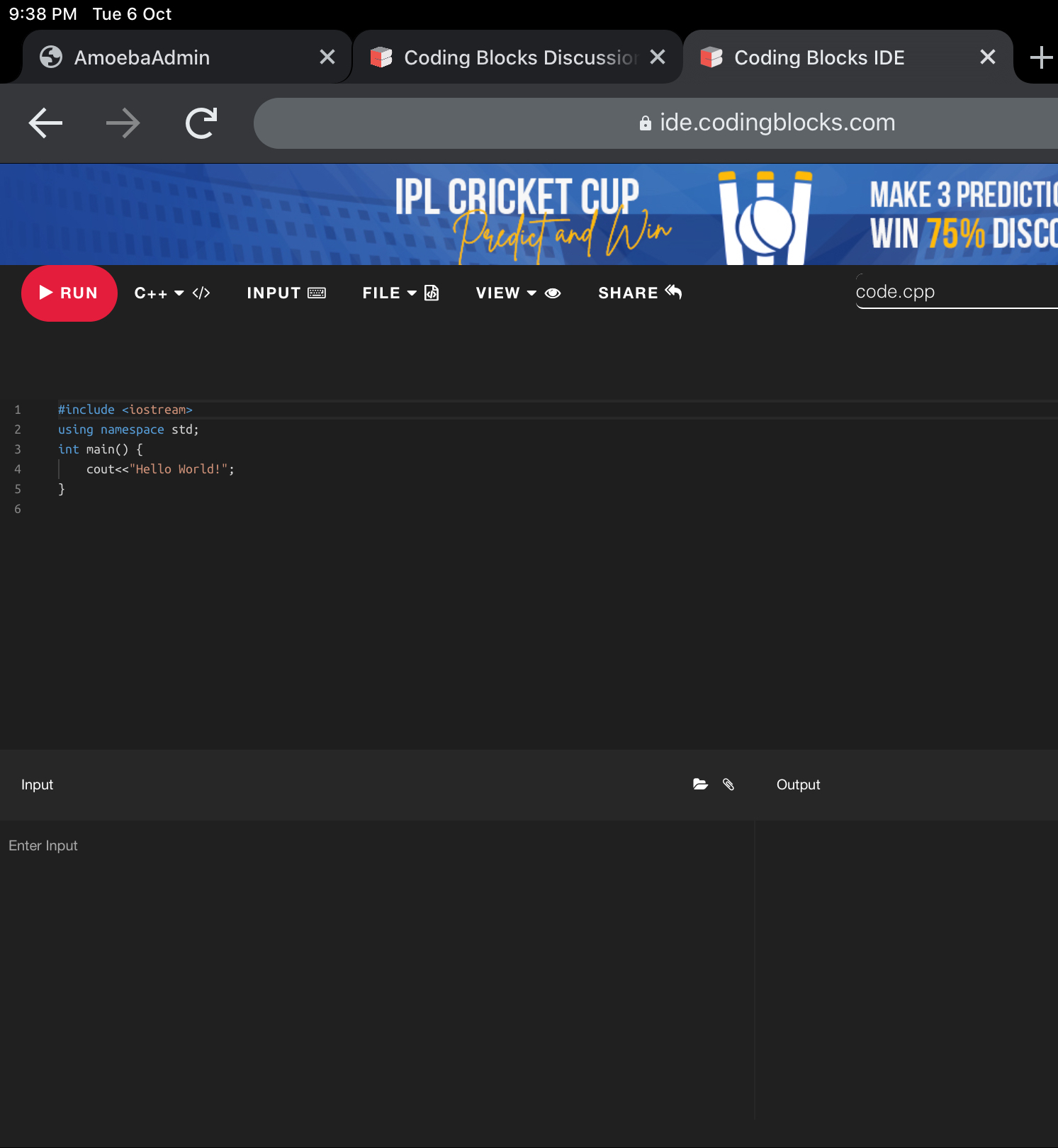 Moreover if you don’t know how to share code using ide.codingblocks.com you can ask me