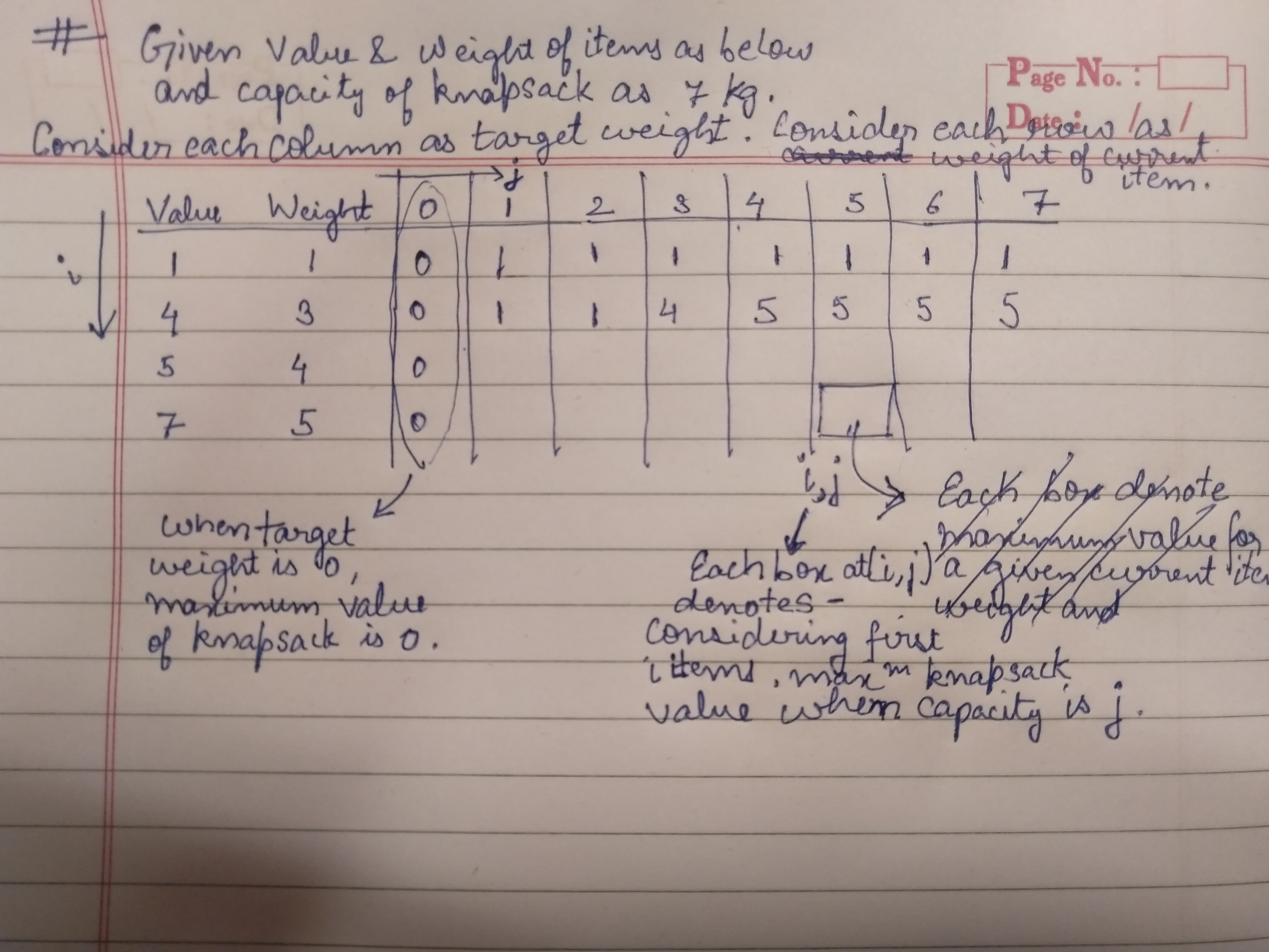 - Either pick up that item only if its weight< capacity of Knapsack