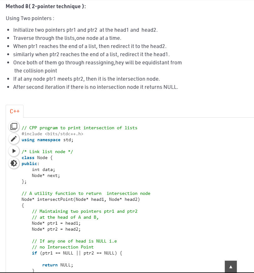Hey @meet1708 the problem you have mentioned in doubt is of intersection point of linked list, and your code doesn’t match with the problem , you have doubt in intersection point of linked list?