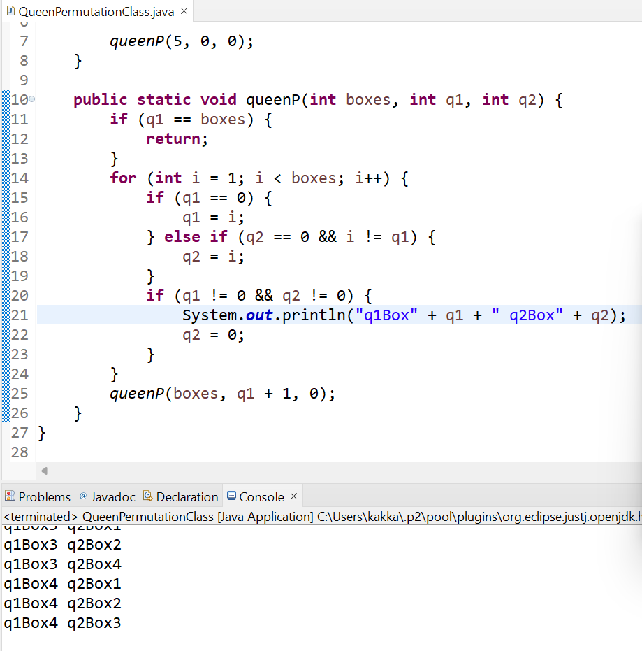 Passing arguments to the function (boxes=5) and getting the ans as 12 ways for Queen Permutation problem. However, i have doubt if it really called be as the backtracking solution ?