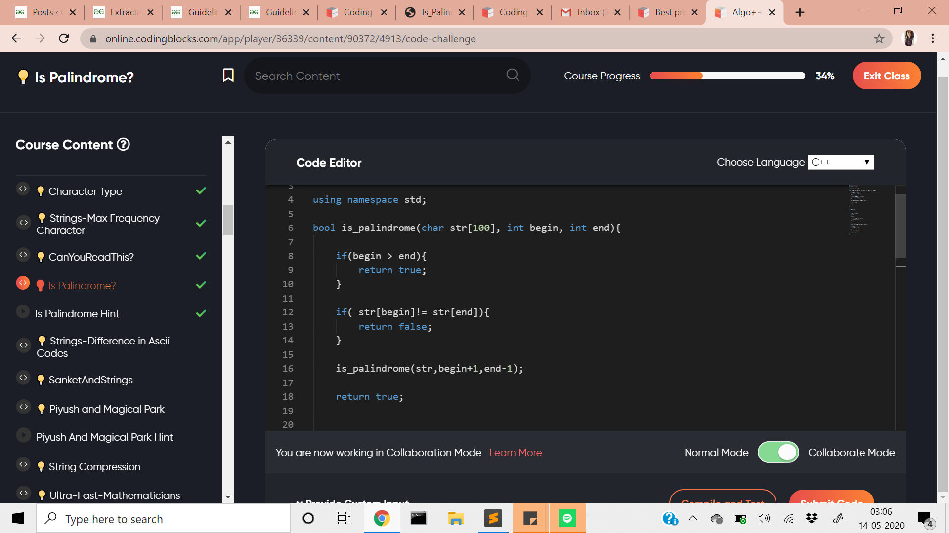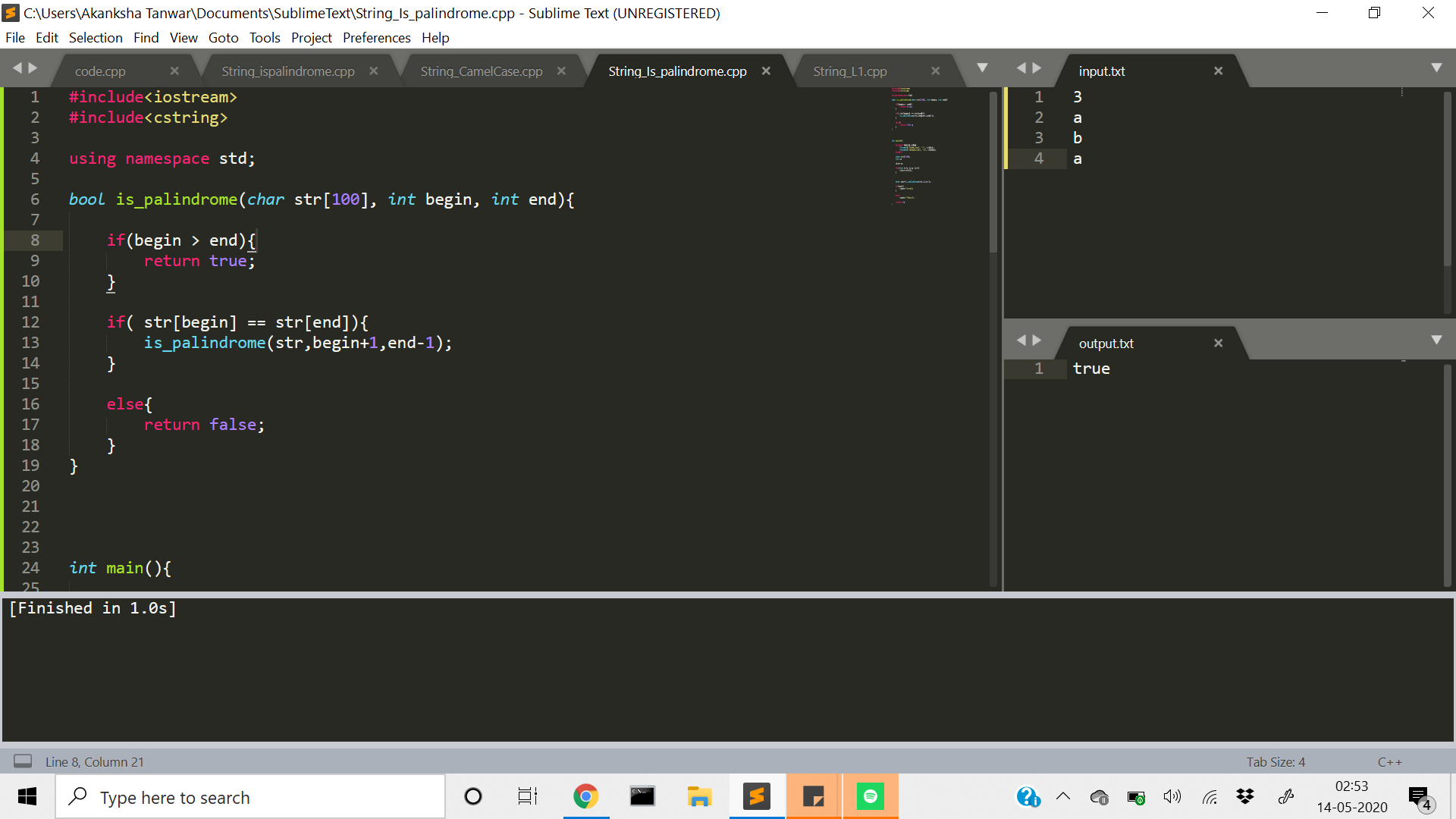 The code is now not working fine due to the removed else statement in bool function but working fine in sublime.