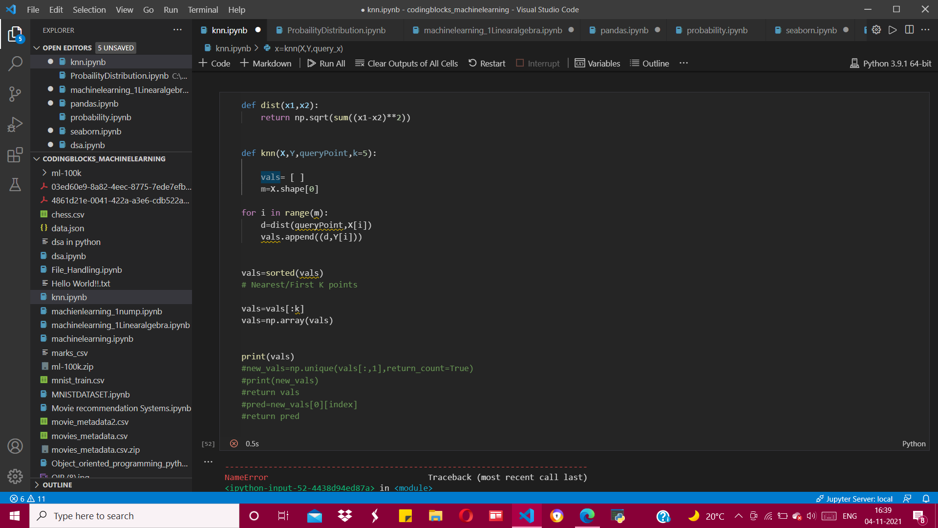 M is not defined in the code