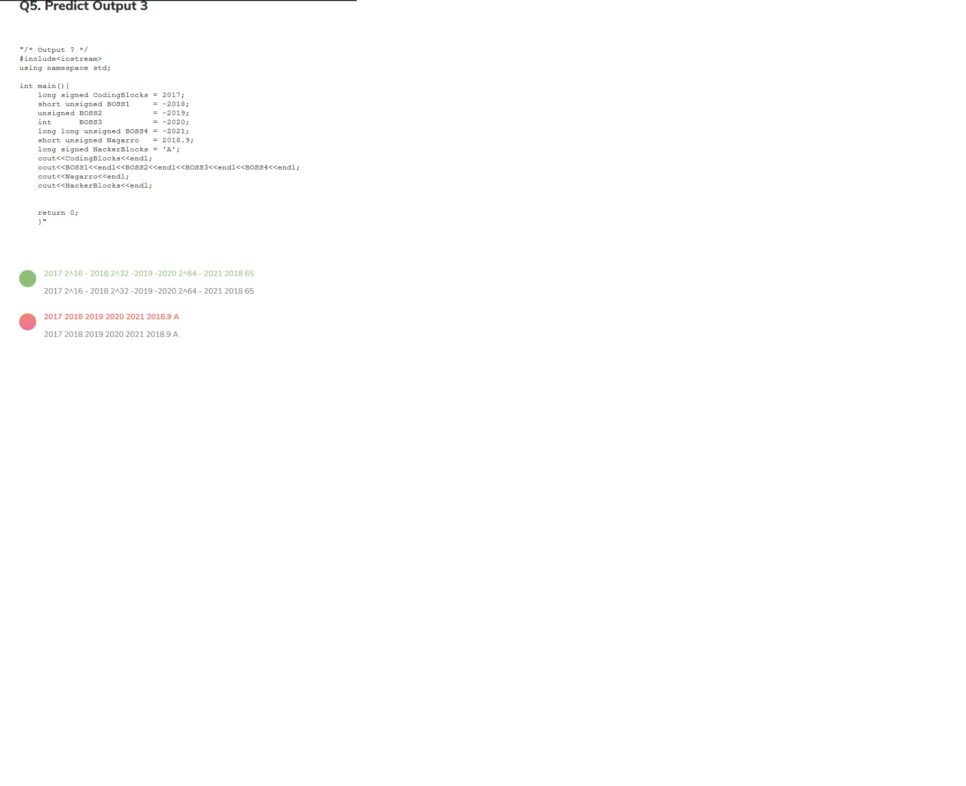 Mcq question data type