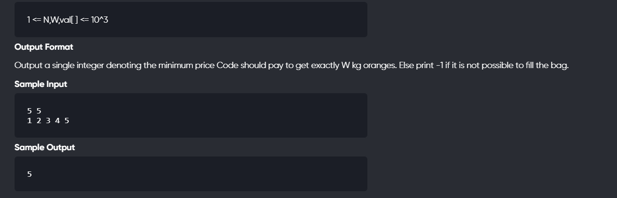 In second line u are given w numbers . where value at ith position is cost of i kg orange.