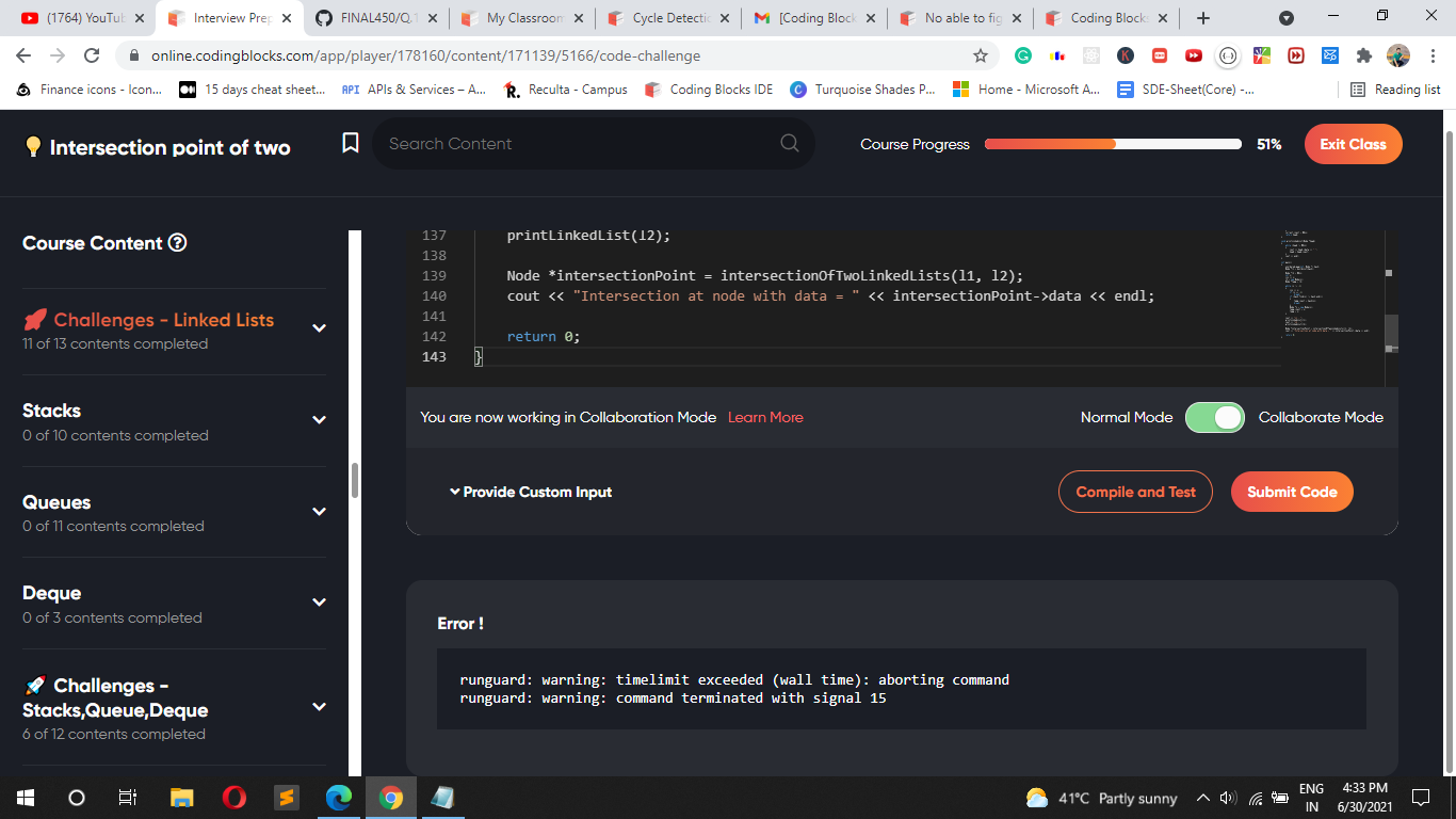 while( l1!=l2 && l1!=NULL && l2!=NULL)