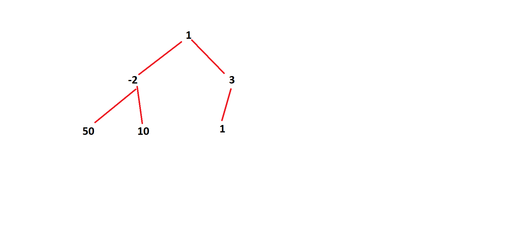 in this tree answer is 58 (50+(-2)+10)