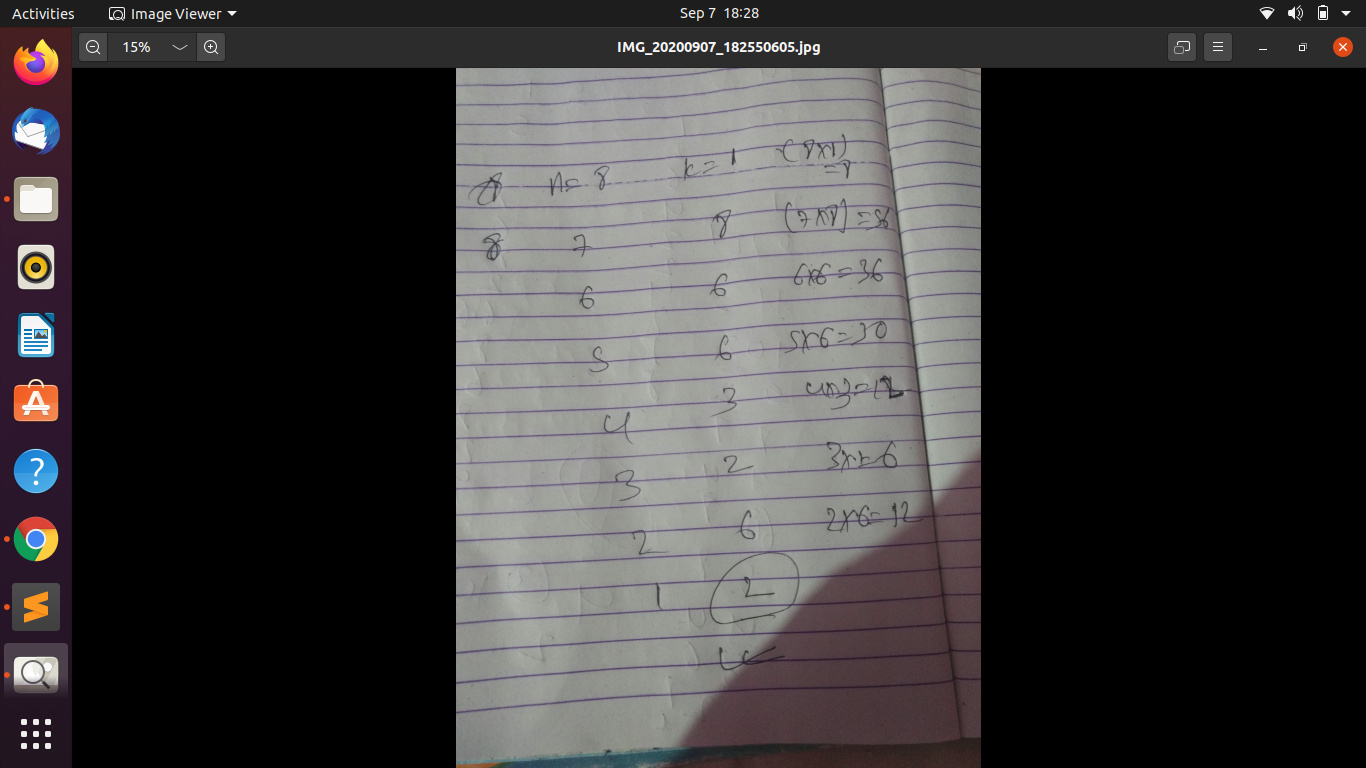 2).Now i multipled it by k(which is 1 intially ) and stored it in kk.