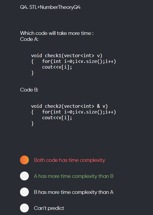 For check2, vector v is passed by reference so, there is no extra cost of copying.