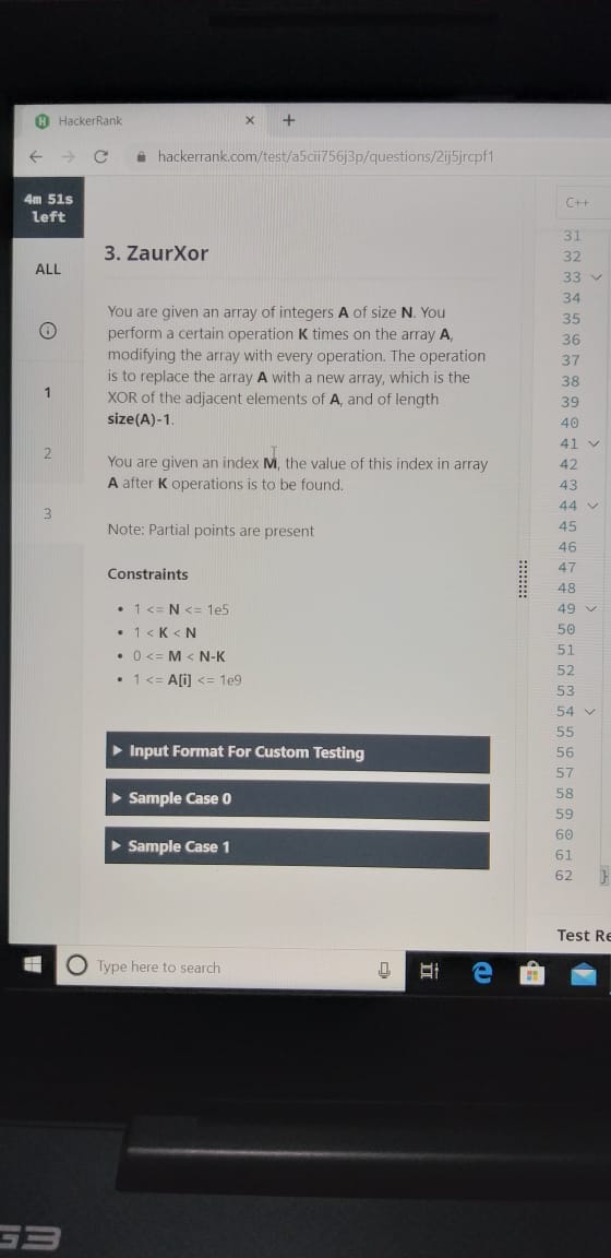 After this if the k is greater than some 2^x-1 we can replace our array with the new one and reduce the value of k as well to k -= 2^x-1 and then start doing operations on the new one.