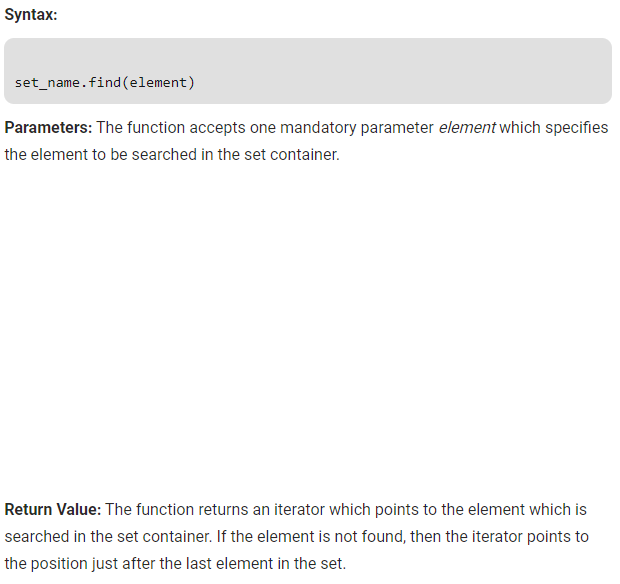 now if the element we are searching is not present in the set then it returns iterator of end of container.