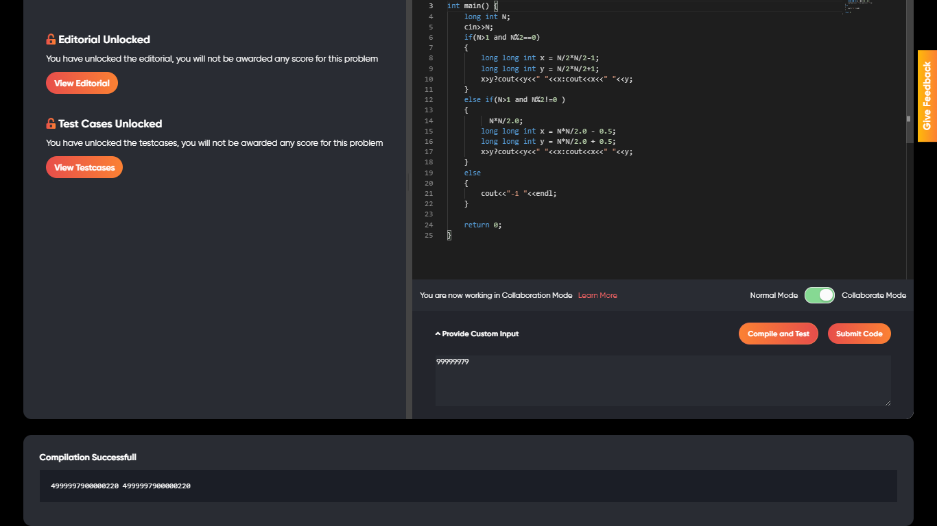 sir i again correct my code but still facing prblm in one test case when n=99999979 i am getting same value dont why pls help me to correct my code i attached the same screenshot for the mention test case