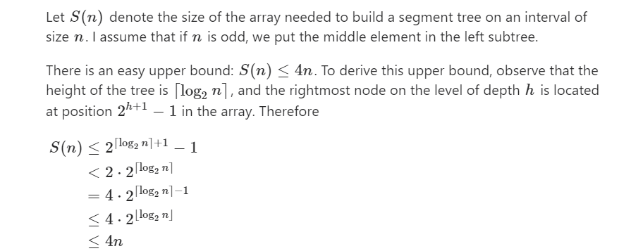 Why segment tree will always take <=4N+1 space?