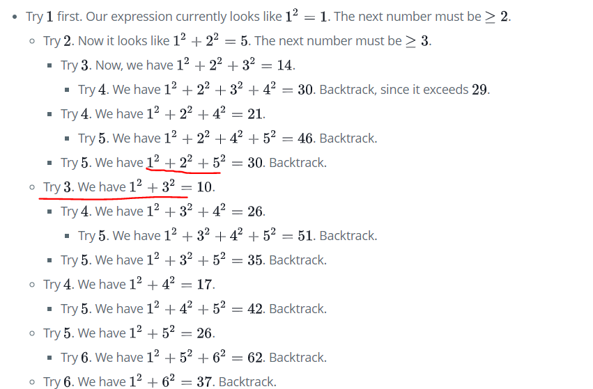 The Power Sum Can someone please explain me the solution how resursion and backtracking working here